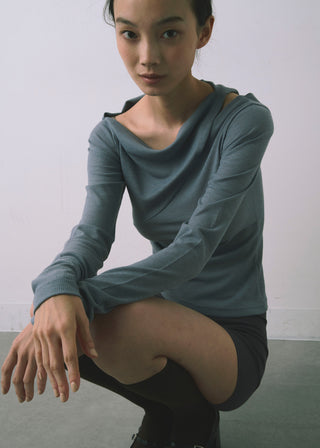 ONE SHOULDER DRAPE TOPS / blue ¥8,800