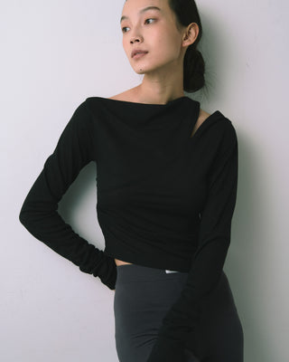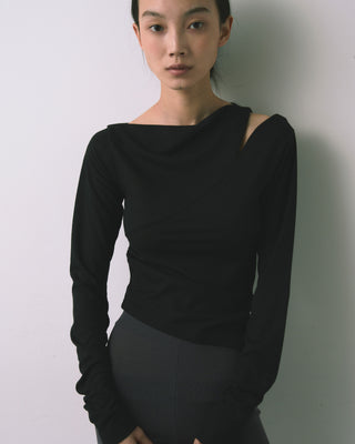 ONE SHOULDER DRAPE TOPS / black ¥8,800