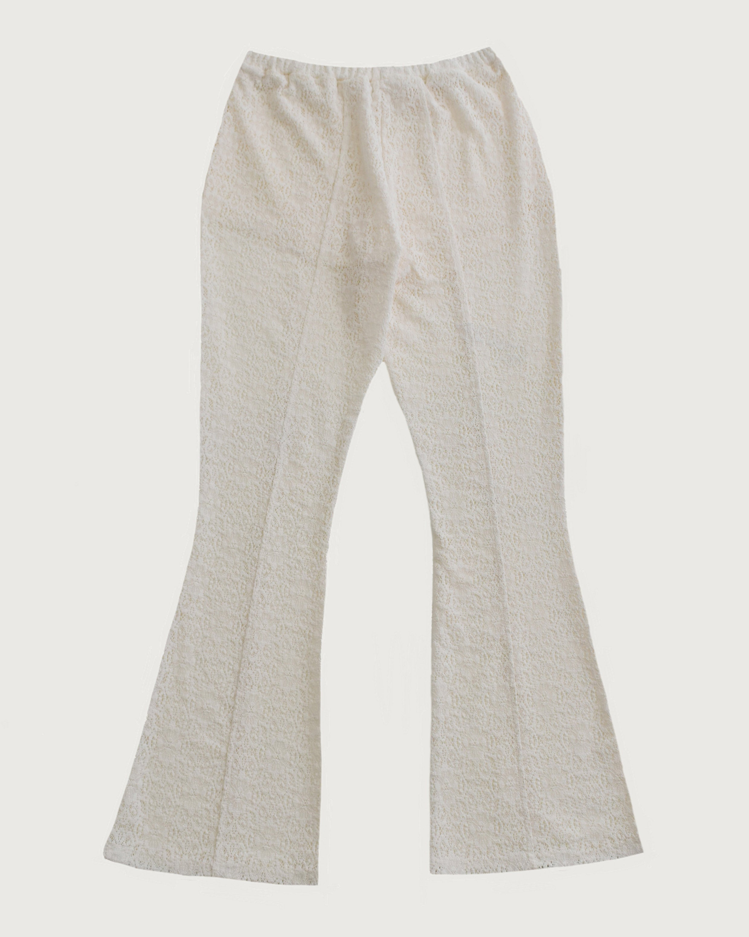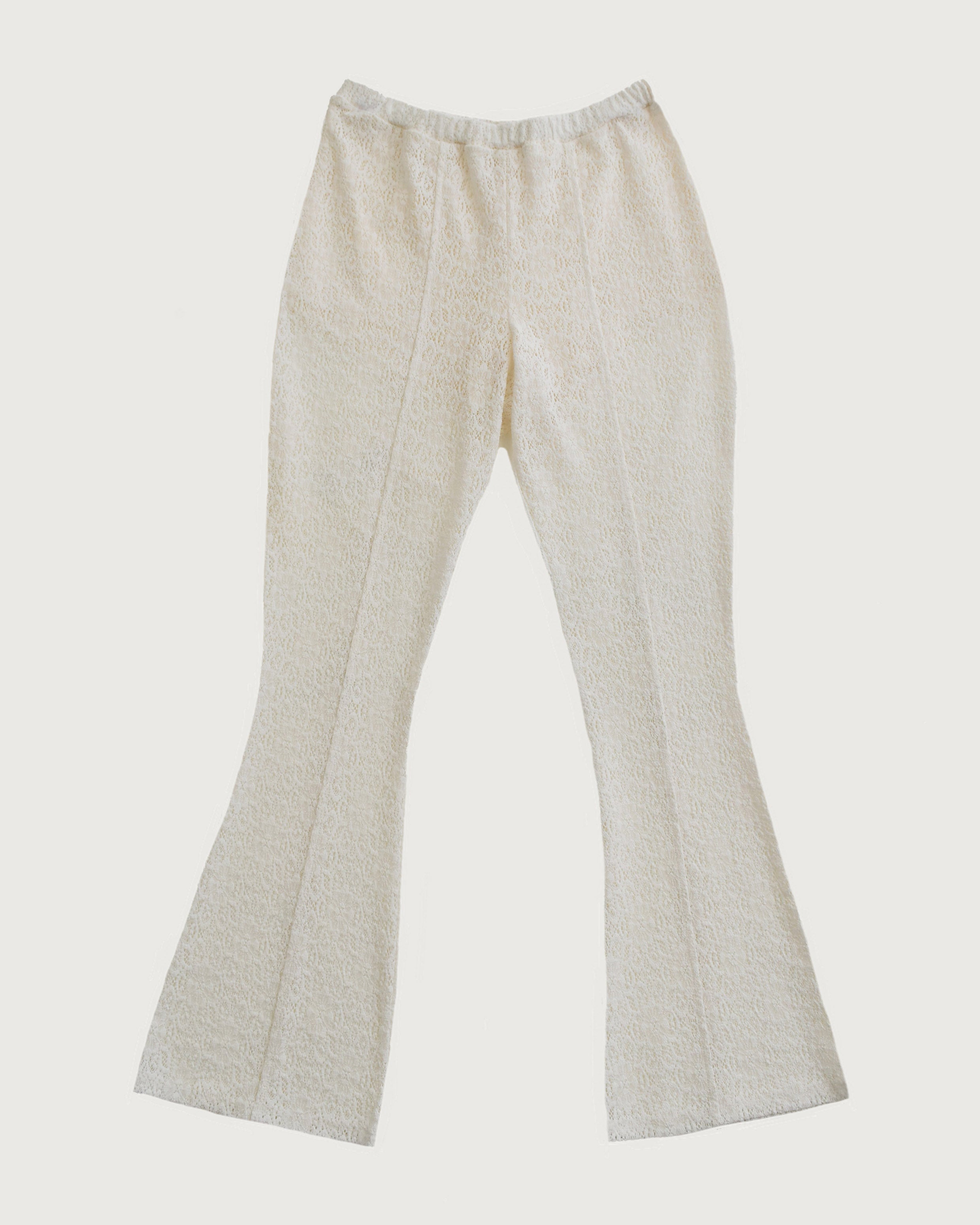 繊細なレースを贅沢に使用した、存在感のあるフレアパンツ。