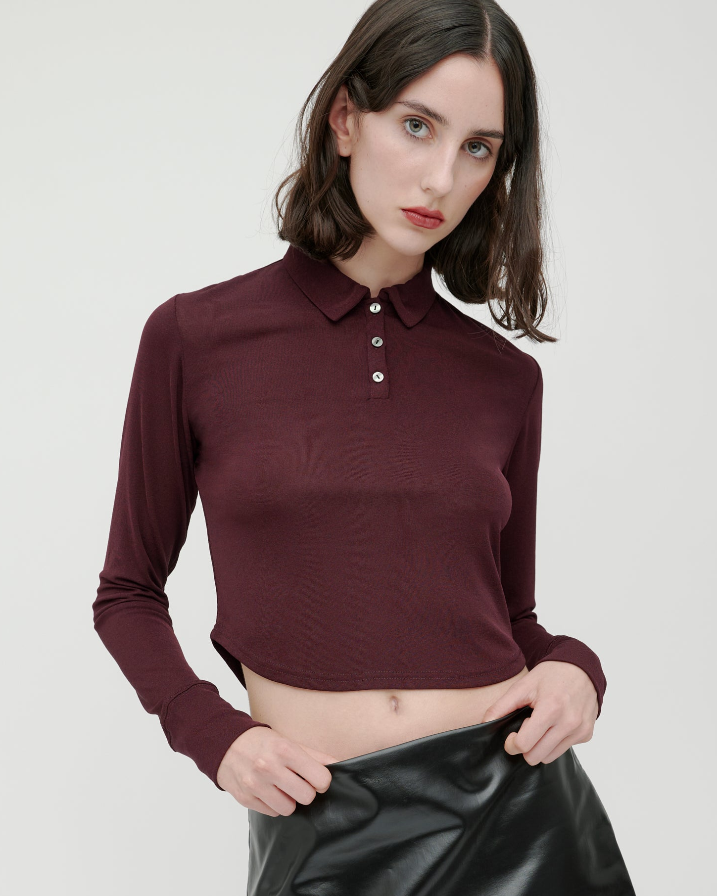 ポロ衿が首回りに自然な陰影を作り、顔周りも引き締めてくれます。