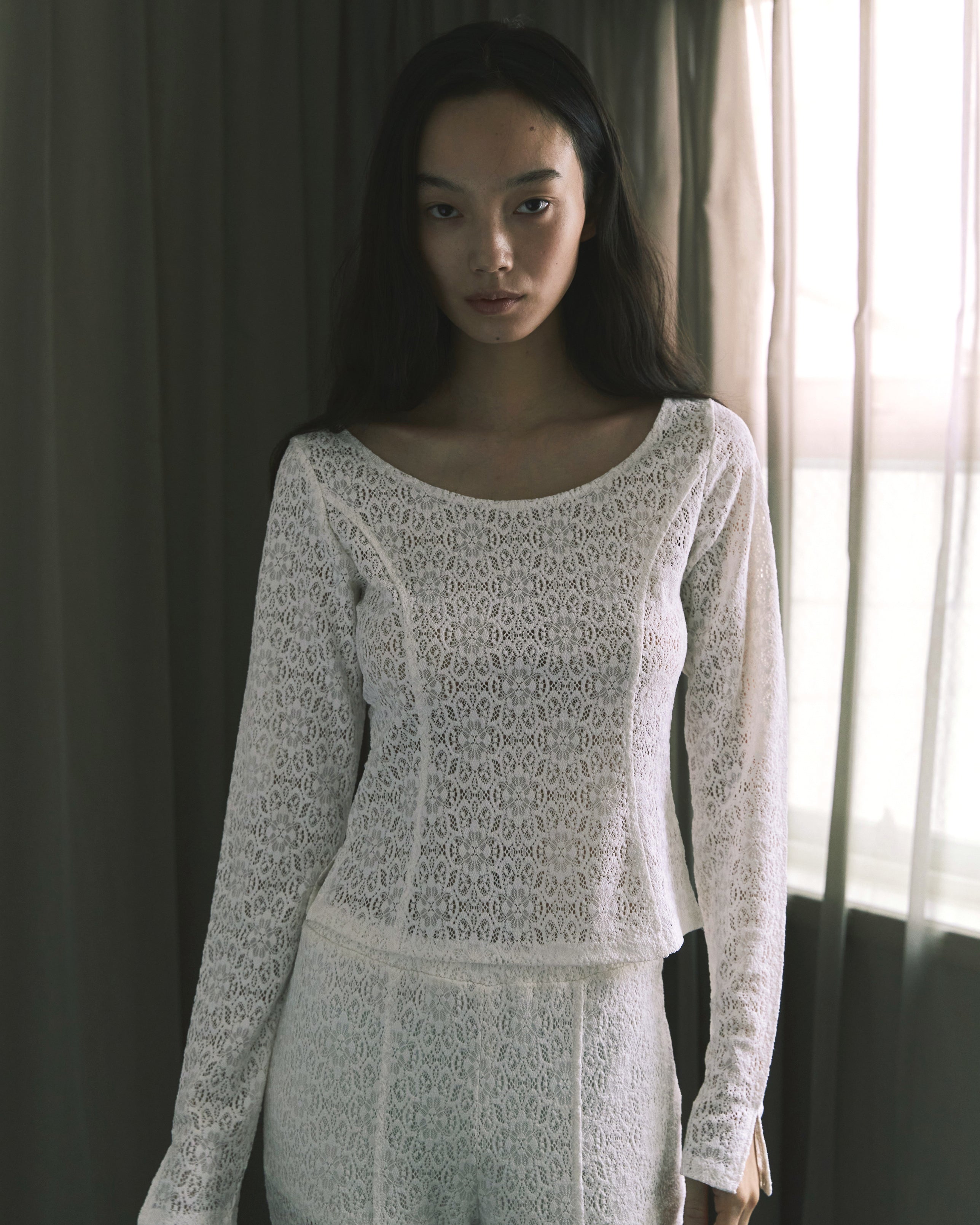 甘さに寄りすぎず、クラシックにもなりすぎないレース柄が、洗練された印象に。