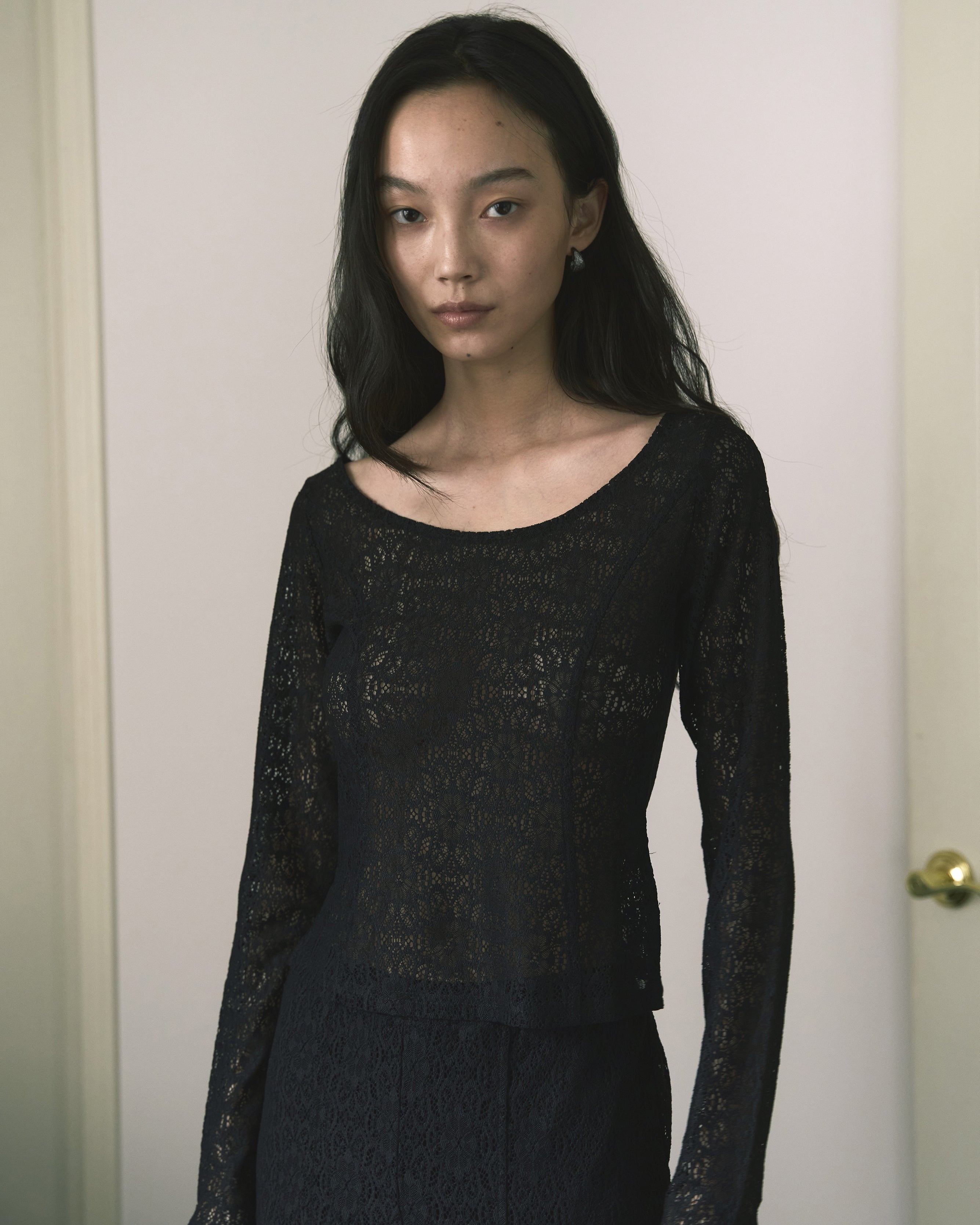 繊細なレースに、シャープなムードを重ねたモードトップス。